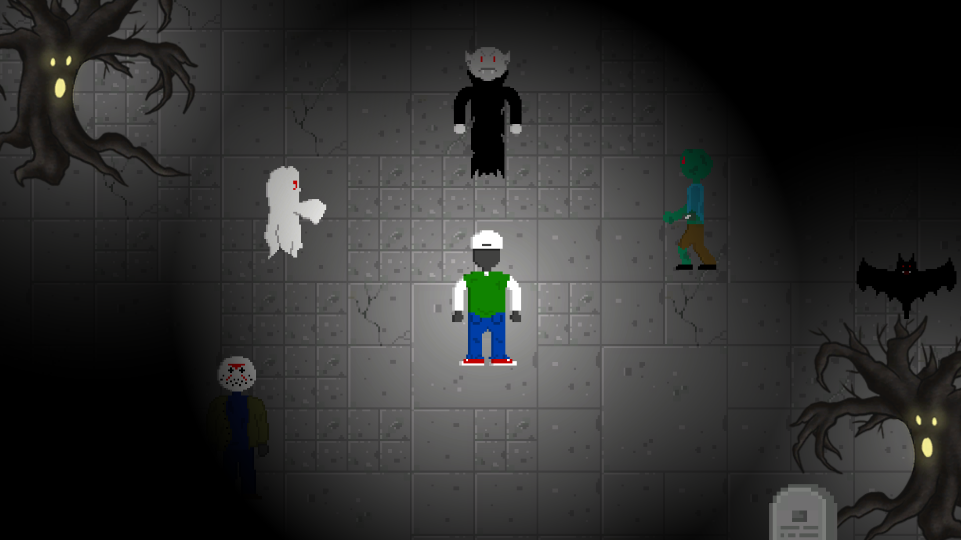 This is a horror game where the player must escape the graveyard they find themselves in. To do this, they must click on the axes to collect them and click on the correct tree to chop it down. This will be while zombies chase them down and attempt to kill them.